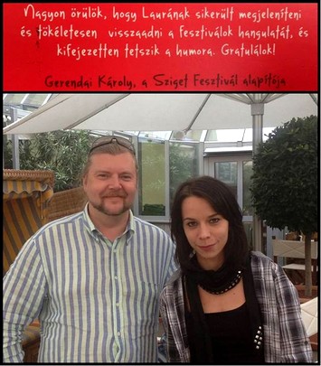 Készült egy fotó Lauráról és Gerendai Gáborról, aki az ajánlót írta a Bábel borítójára :)